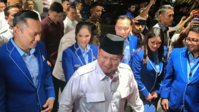 Prabowo, yang tampil mengenakan kemeja putih, disambut langsung oleh Ketua Umum Partai Demokrat Agus Harimurti Yudhoyono (AHY) dan Ketua Fraksi Partai Demokrat Edhi Baskoro Yudhoyono atau Ibas. Mereka tampak akrab, saling bersalaman, dan bertukar sapaan hangat.